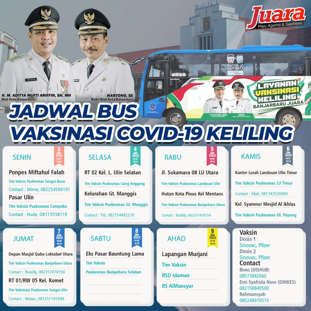 Jadwal Bus Vaksinasi Keliling 3 Januari – 9 Januari 2022