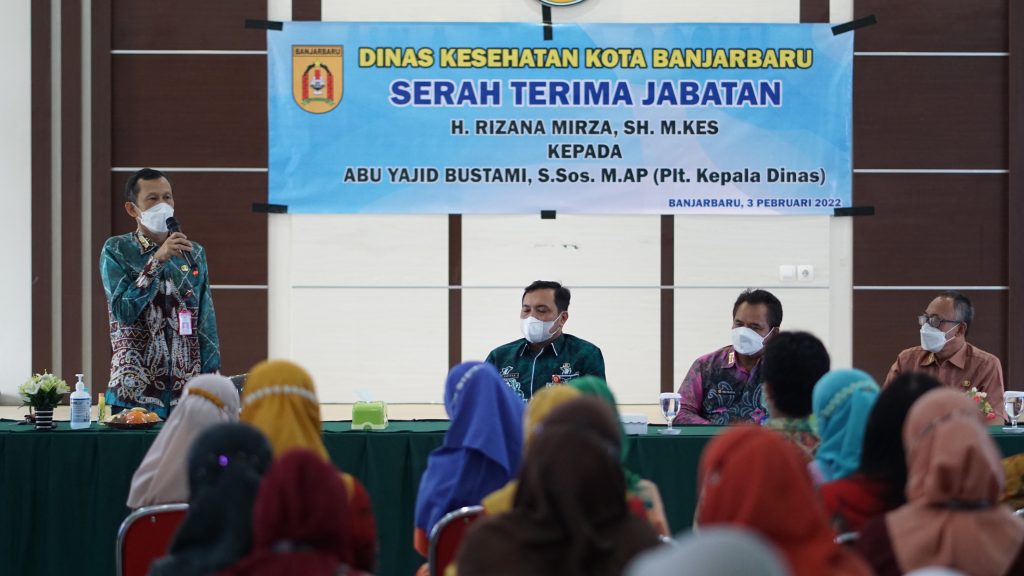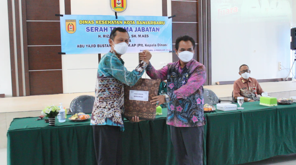 Dengan beralihnya jabatan tersebut, Dinas Kesehatan Kota Banjarbaru melaksanakan Serah Terima Jabatan dari H. Rizana Mirza, SH. M.KES Kepala Dinas terdahulu kepada Abu Yajid Bustami, S.Sos., M. AP, sebagai Pelaksana Tugas (Plt) Kepala Dinas Kesehatan Kota Banjarbaru, di Aula Dinas Sosial Kota Banjarbaru, Kamis (03/02/2022).