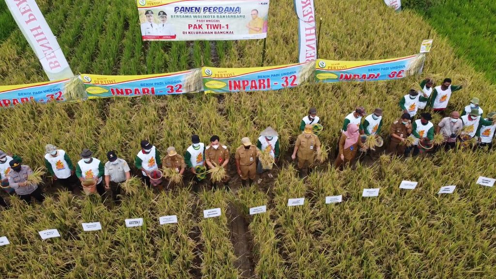 Padi yang ditanam dilahan seluas 6 Hektar ini, dipanen langsung oleh Wali Kota Banjarbaru H. M. Aditya Mufti Ariffin berlangsung dengan sederhana. Setelah melaksanakan panen, acara dilanjutkan dengan syukuran dan ramah tamah dengan petani dan para penyuluh pertanian.