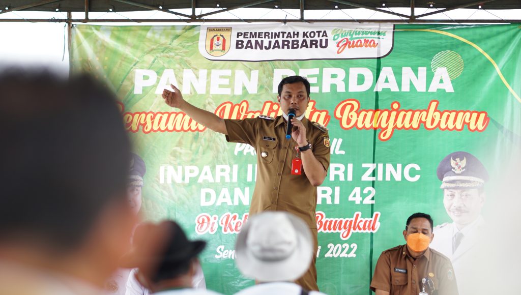 Orang nomor satu di Kota Banjarbaru ini pada sambutannya menyampaikan selamat atas panen raya ini, mudah-mudahan semakin memicu petani dalam mengolah lahan untuk meningkatkan hasil pertanian di Kota Banjarbaru. Varietas yang dipanen ini merupakan jenis produk diantara varietas lokal dengan varietas luar, beliau berharap produk ini bisa menjadi produk unggulan.