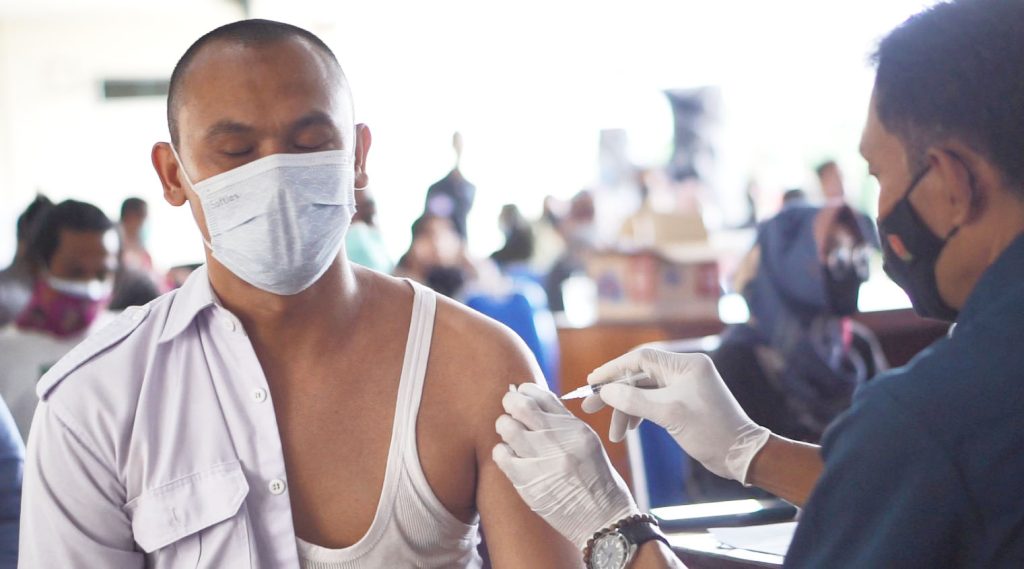 Vaksinasi massal di Mapolres Banjarbaru. Foto – Yudhis.