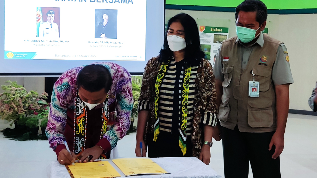 Penandatangan Kesepakatan Bersama Pemko Banjarbaru dengan Balai Besar Litbang Sumberdaya Lahan Pertanian Kementan – Foto: Oriz