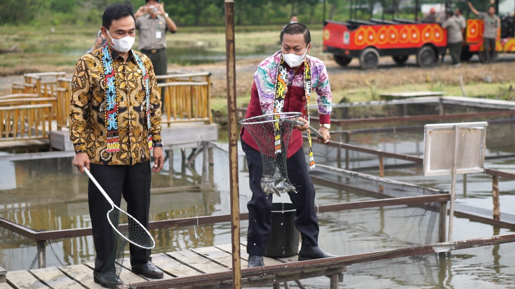 H. M. Zairullah Azhar (kiri) dan Wartono (kanan) memanen Ikan – Foto: Oriz