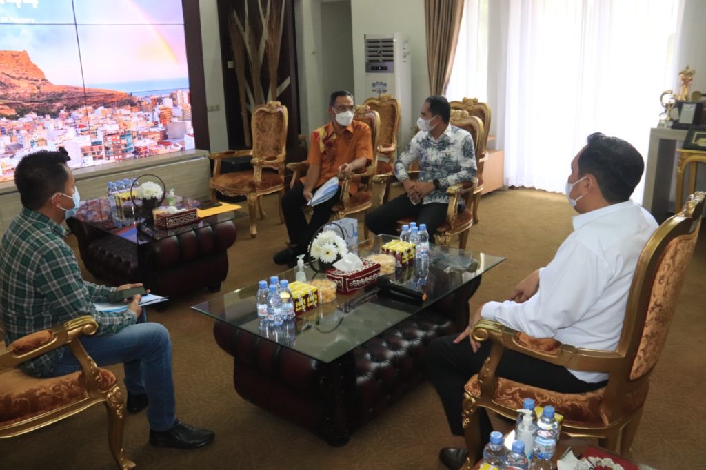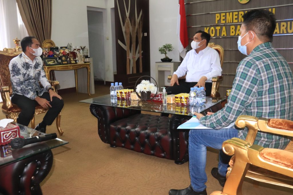 Banjarbaru Jum’at (25 Februari 2022) Wali Kota Banjarbaru H M Aditya Mufti Ariffin SH MH Audiensi dengan Dewan Komisaris Bank Kalsel. Bertempat di Ruang Tamu Utama Wali Kota Banjarbaru. Tampak Plt Komisaris Utama Bank Kalsel Dr Hatmansyah S Ag ME CPHR CBA CRGP CFRM, Komisaris Independen Syahrituah Siregar SE MA dan Kepala Cabang Bank Kalsel Banjarbaru Fachriza Nor Asli. (Prokopim Banjarbaru/Upik)