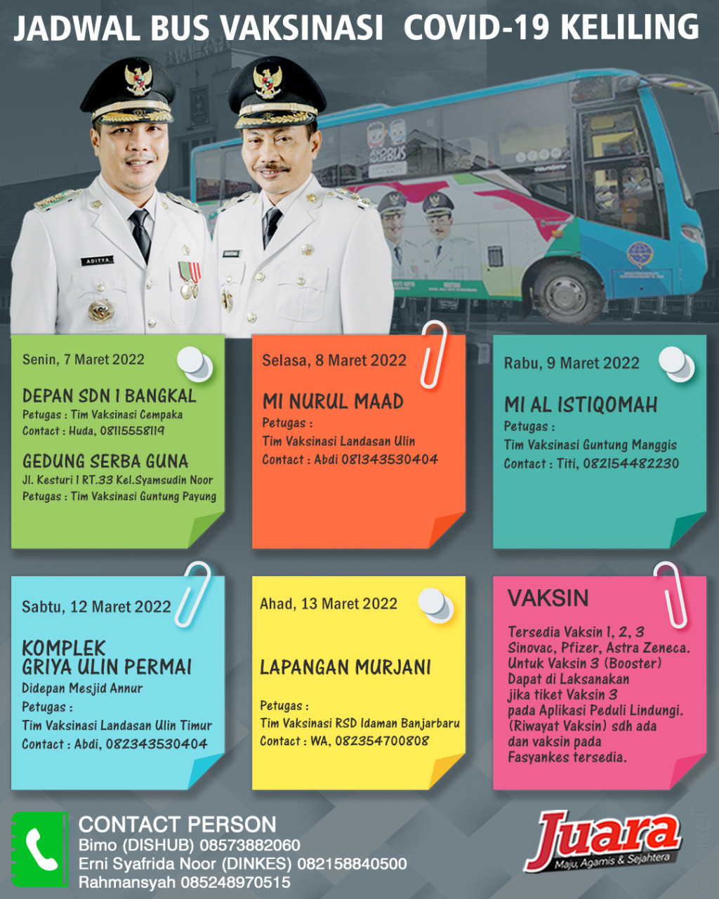 (Info Grafis) Jadwal Bus Vaksin Keliling 7 Maret – 13 Maret 2022