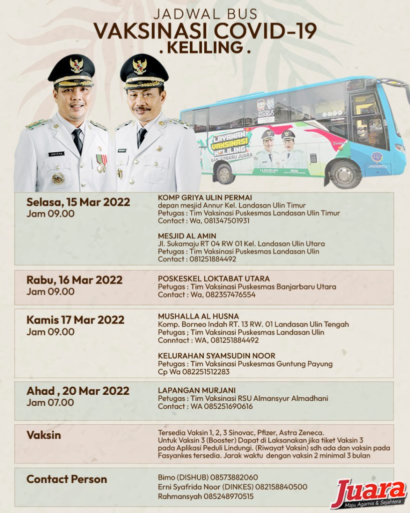 (Info Grafis) Jadwal Vaksin Bus Keliling 15 Maret s.d 20 Maret 2022