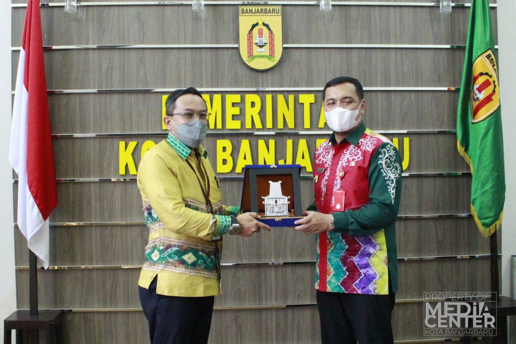 Pada akhir kunjungannya, Pimpinan KPP Madya Banjarmasin Ari Djunaedi memberikan cinderamata kepada Wali Kota Banjarbaru H.M. Aditya Mufti Ariffin, SH, MA sebagai wajib pajak yang data perpajakannya tercatat di KPP Madya Banjarmasin.(MedCenBJB)