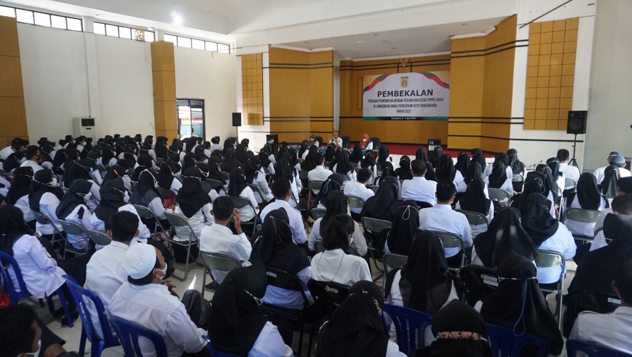 MEDIA CENTER BANJARBARU – Pemerintah Kota Banjarbaru menggelar pembekalan bagi Pegawai Pemerintah dengan Perjanjian Kerja (PPPK) guru, dilingkungan Dinas Pendidikan Kota Banjarbaru tahun 2022, bertempat di Aula Mediatama Dinas Pendidikan Kota Banjarbaru, Rabu (06/04/2022).