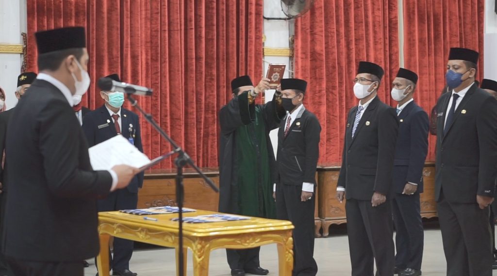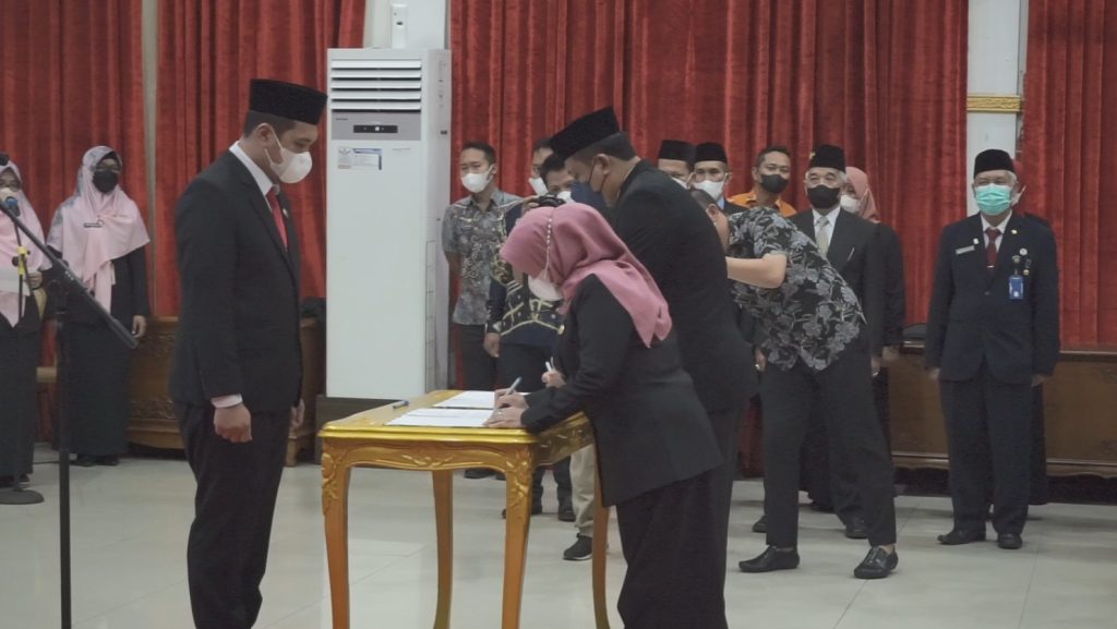 MEDIA CENTER BANJARBARU – Wali Kota Banjarbaru, H. M. Aditya Mufti Ariffin melantik dan mengambil sumpah atau janji jabatan Kepala Sekolah di Lingkungan Dinas Pendidikan Kota Banjarbaru, di Aula Gawi Sabarataan, Balai Kota Banjarbaru, Kamis (14/04/2022).