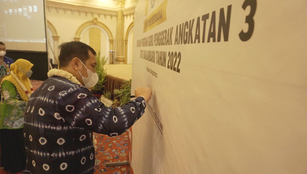 Wali Kota Banjarbaru, H. M. Aditya Mufti Ariffin menandatangi dukungan Program Guru Penggerak. Foto – Oriz