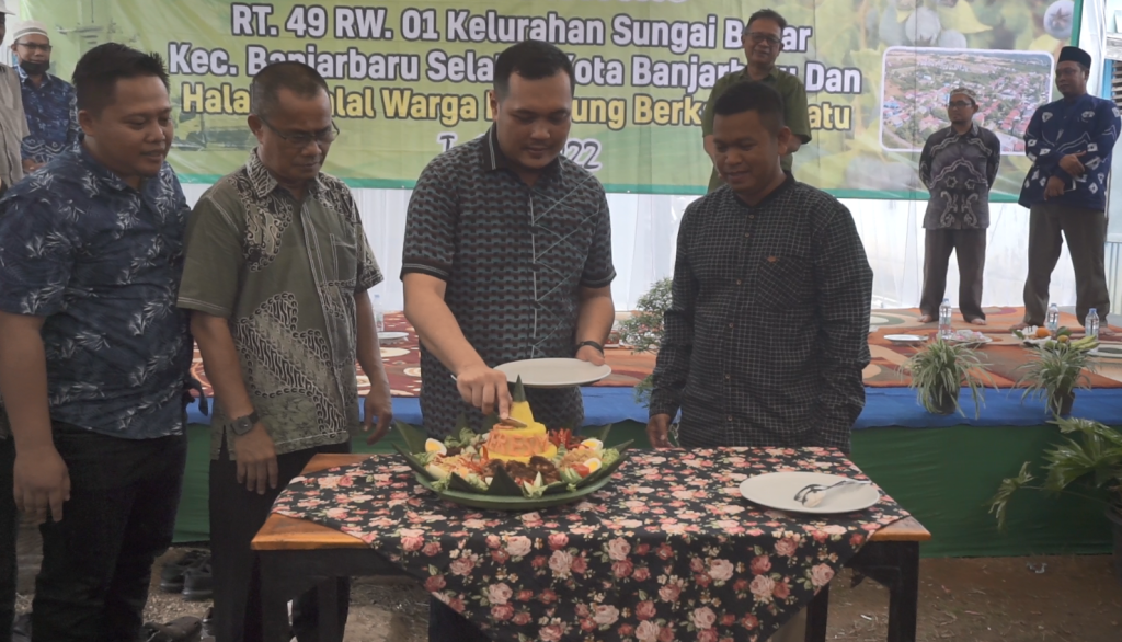 Peresmian RT.49 RW.01 ini diakhiri dengan penyerahan plakat penghargaan dan potong nasi tumpeng oleh Wali Kota Banjarbaru. H. M. Aditya Mufti Ariffin. (Yds/MedCenBJB)