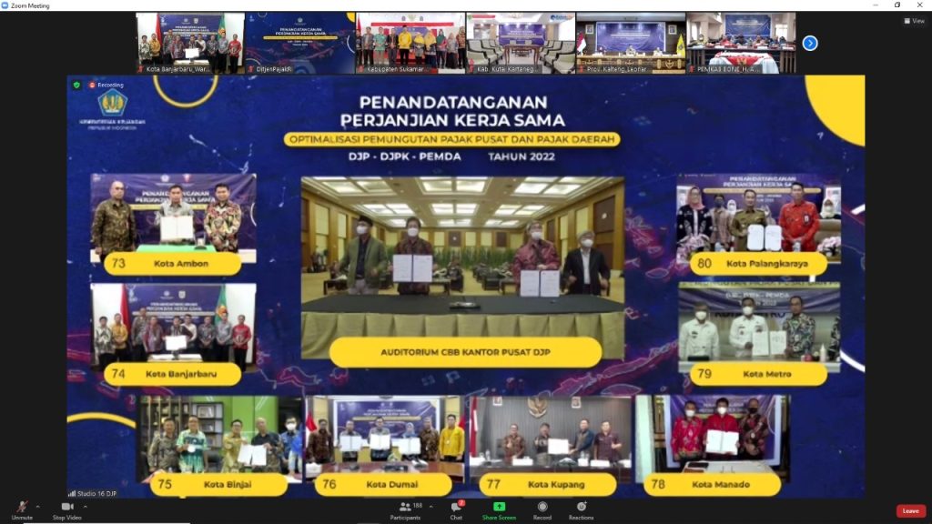 Secara Zoom acara ini di hadiri Wakil Wali Kota Banjarbaru, Wartono di dampingi Kepala BPKAD BAPPEDA, BP2RD, Kabag TAPEM dan Hukum. Serta di ikuti banyak peserta dari seluruh Kabupaten Kota di Indonesia. Dan beliau juga yang secara langsung menandatangani perjanjian tersebut.
