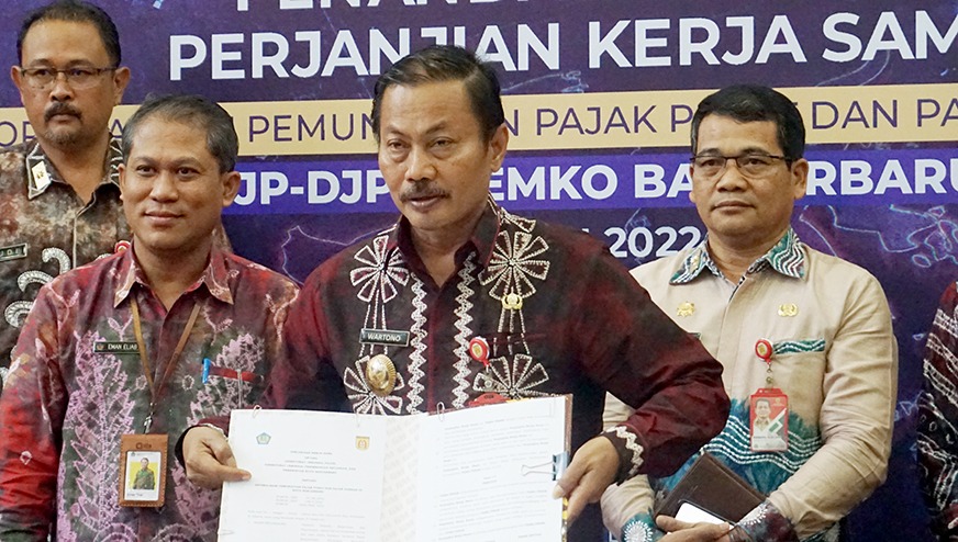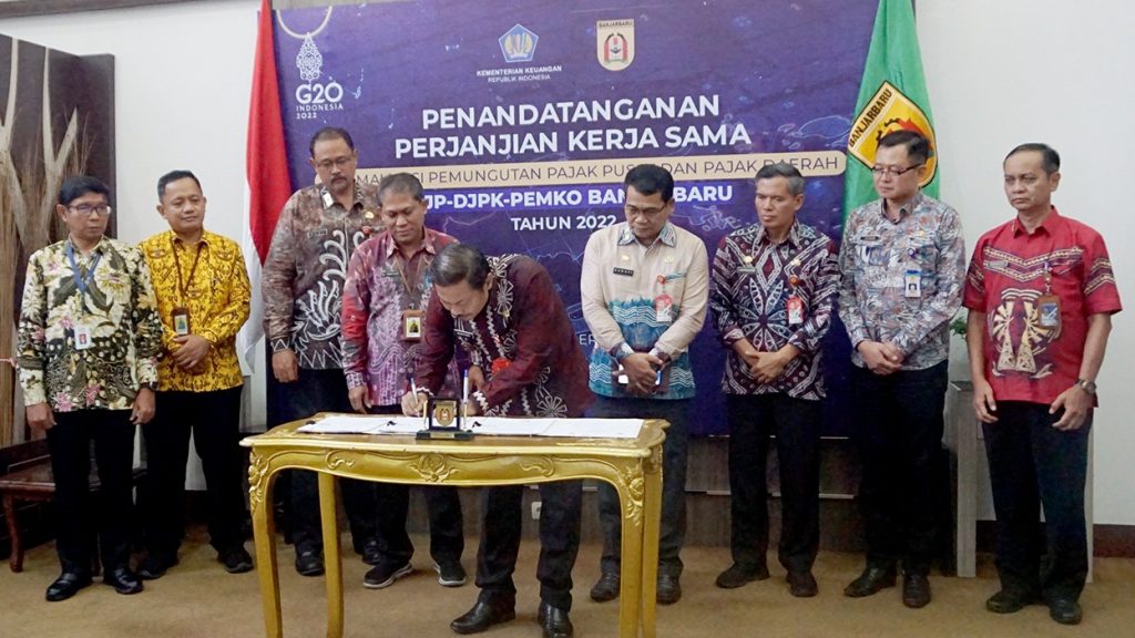 MEDIA CENTER BANJARBARU – Di Ruang tamu Wali Kota Banjarbaru (15/09/2022) kemaren telah dilaksanakan Seremoni Penandatanganan Perjanjian Kerja Sama Optimalisasi Pemungutan Pajak Pusat dan Pajak Daerah DJP-DJPK Pemko Banjarbaru Tahun 2022.
