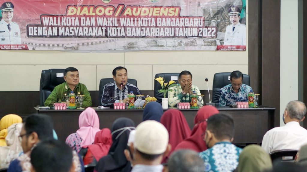 MEDIA CENTER BANJARBARU – Dalam rangka mengeratkan hubungan dengan masyarakat serta sarana memberikan informasi dengan dialog kedua belah pihak, Wali Kota dan Wakil Wali Kota Banjarbaru mengadakan dialog dan audiensi dengan Masyarakat, di Aula Kantor Kecamatan Landasan Ulin, pada Kamis (22/09/2022).