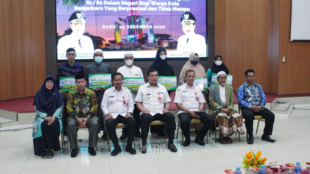 MEDIA CENTER BANJARBARU – Pemerintah Kota Banjarbaru menyerahkan beasiswa keagamaan Santri ke Luar Negeri dan Program S1/S2 dalam Negeri bagi Warga Kota Banjarbaru yang berprestasi dan tidak mampu di Aula Sabarataan Pemko Banjarbaru pada Rabu (14/12/2022).
