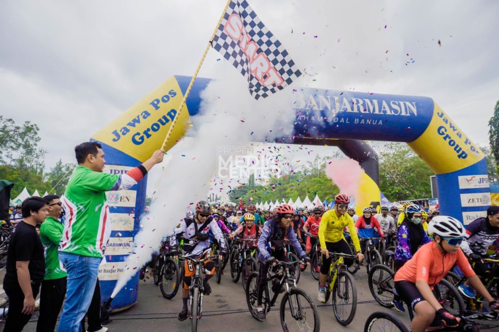MEDIA CENTER BANJARBARU – Event Gowes XC FUN KADA BEHADANGAN Part 1, dilepas secara langsung oleh Wali Kota Banjarbaru H. M. Aditya Mufti Ariffin, ia mengibarkan bendera start sebagai pertanda dimulainya gowes yang diikuti sekitar 4 ribu orang tersebut.