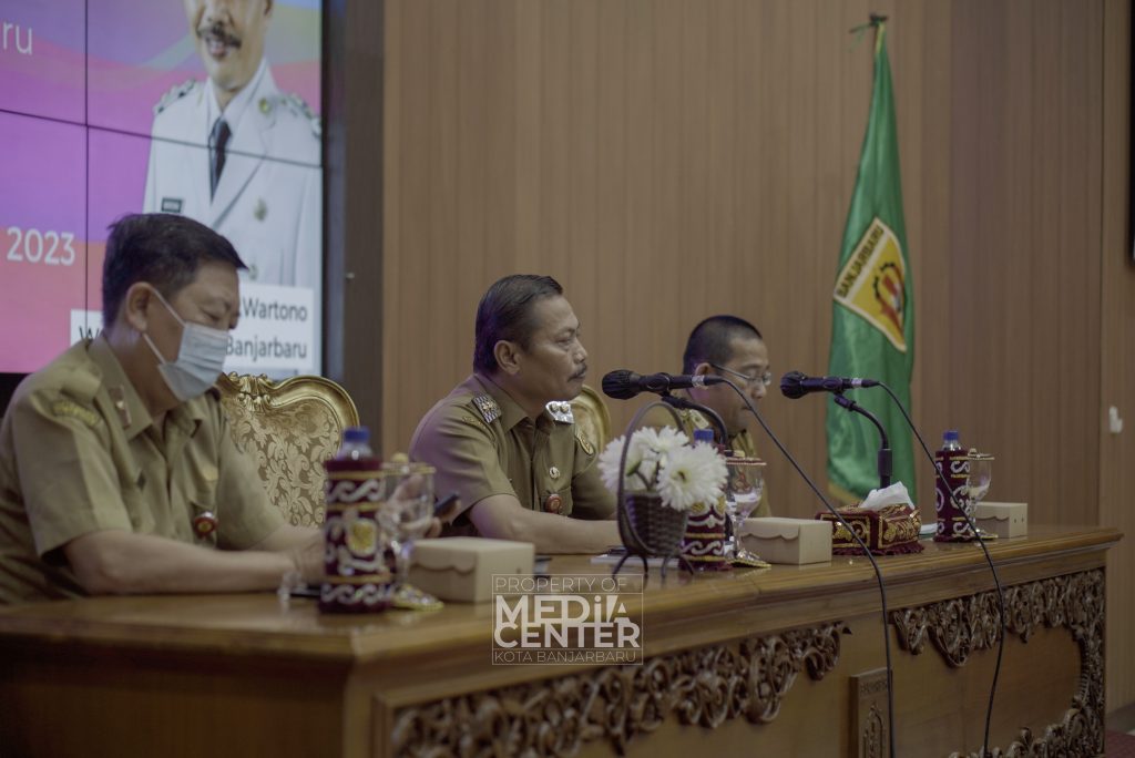 MEDIA CENTER BANJARBARU – Wakil Walikota Banjarbaru Wartono buka acara sosialisasi Peraturan Wali Kota (Perwali) Nomor 47 tahun 2022, tentang Pedoman Pelaksanaan Kerjasama Publikasi Pemerintah Kota Banjarbaru melalui media masa, di Aula Gawi Sabarataan, Balai Kota Banjarbaru, pada Selasa (03/01/2023).