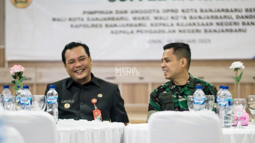 Wali Kota Banjarbaru H. M. Aditya Mufti Ariffin (kiri) bercengkrama dengan Dandim 1006 Banjar Letkol Kav. Zulkifer Sembiring (kanan) – Foto: Oriz
