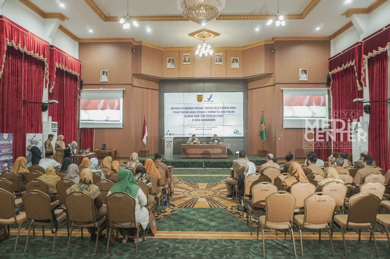 Advokasi Keamanan Pangan Terpadu Desa Pangan Aman, Pasar Pangan Aman Berbasis Komunitas Dan Pangan Jajanan Anak usia Sekolah (PJAS) Di Kota Banjarbaru kemabali di gelar pada hari Senin(27/02/2023). Bertempat di Aula Gawi Sabarataan Pemko Banjarbaru.
