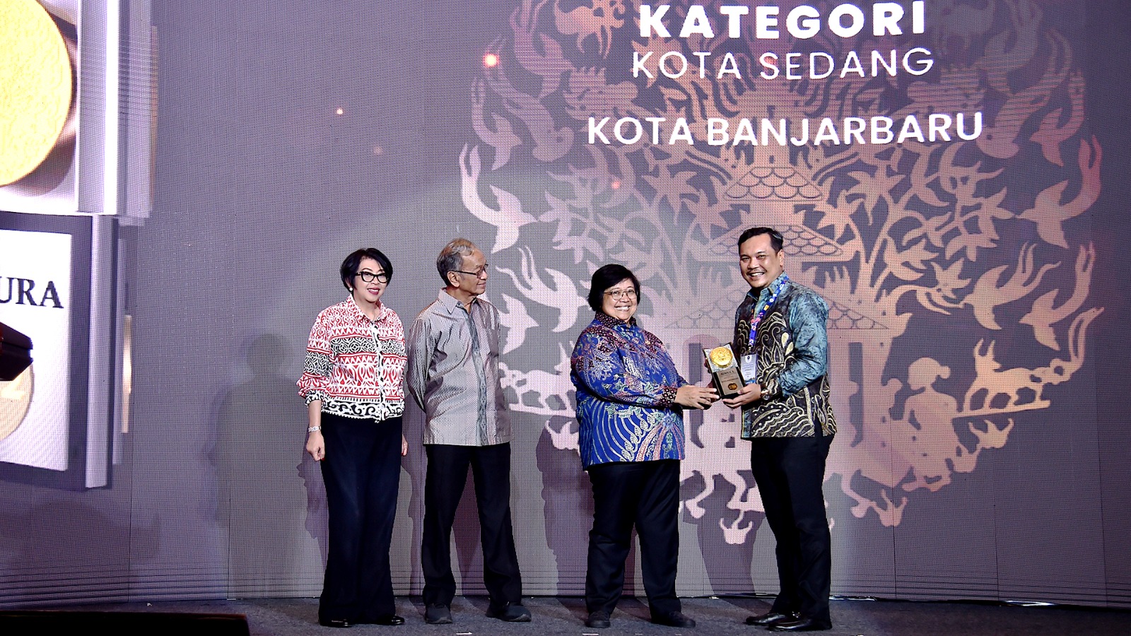 MEDIA CENTER BANJARBARU – Wali Kota Banjarbaru H. M. Aditya Mufti Ariffin terima penghargaan Adipura dari Menteri Lingkungan Hidup dan Kehutanan (LHK) Siti Nurbaya, di Jakarta, Selasa (28/02/2023).