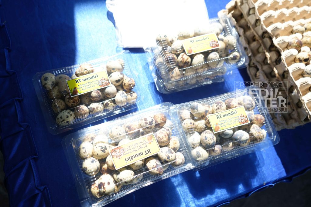 Adapun menu produk pasar murah kali ini tampak lebih beragam, salah satunya karena diisi dari produk UMKM RT Mandiri yg menjual telur puyuh. Lurah Syamsudin Noor mengatakan bahwa produk telur puyuh ini merupakan hasil dari UMKM dari kelurahan Syamsudin Noor.