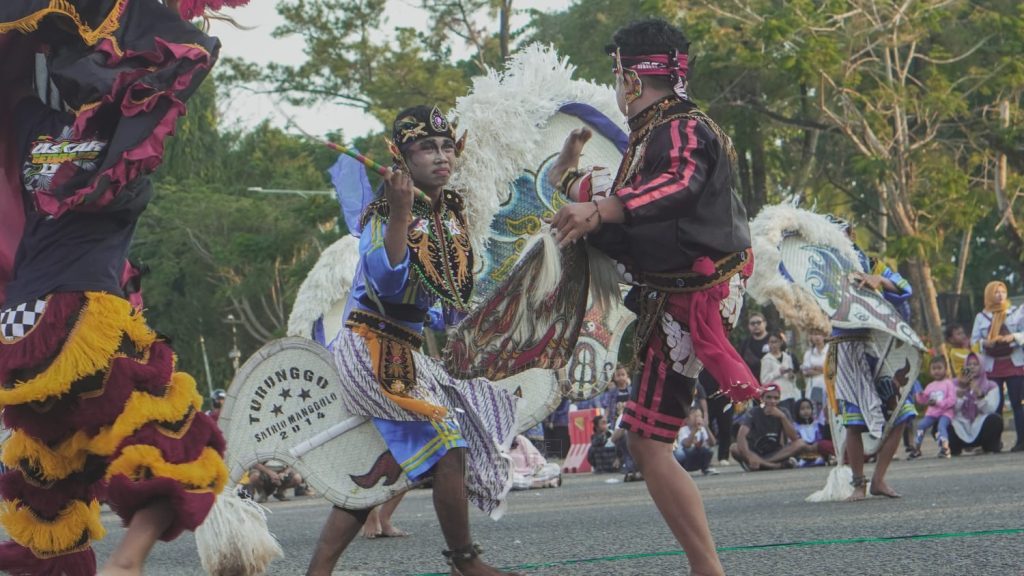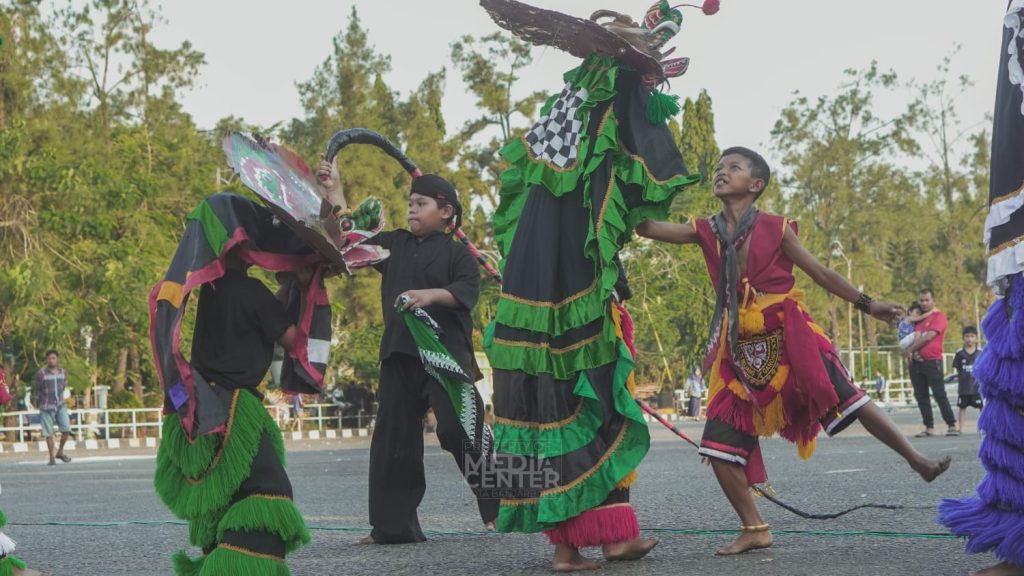 Penampil ketiga dari SMP Negeri 8 Banjarbaru dengan menampilkan tari kuda lumping tradisional, tampak sekelompok penari melakukan gerakan ritmis, dinamis, dan agresif sambil menunggang kuda yang terbuat dari anyaman bambu.