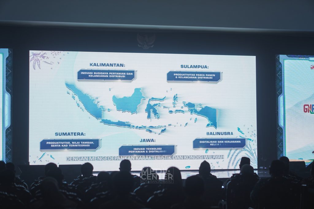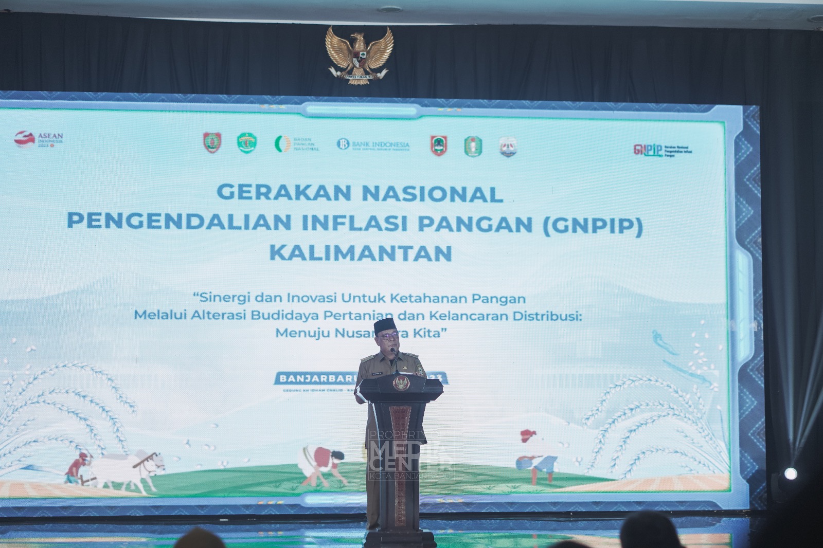 MEDIA CENTER BANJARBARU – Gerakan Nasional Pengendalian Inflasi Pangan (GNPIP) Kalimantan menyelenggarakan acara bertajuk “Sinergi dan Inovasi untuk Ketahanan Pangan melalui Alterasi Budidaya Pertanian dan Kelancaran Distribusi: Menuju Nusantara Kita.” yang dihadiri oleh Gubernur Kalimantan Selatan, Sahbirin Noor, serta Pimpinan Daerah kabupaten dan Kota se-Kalimantan Selatan di Gedung K.H Idham Chalid, Provinsi Kalimantan Selatan Pada Senin (10/07/23).
