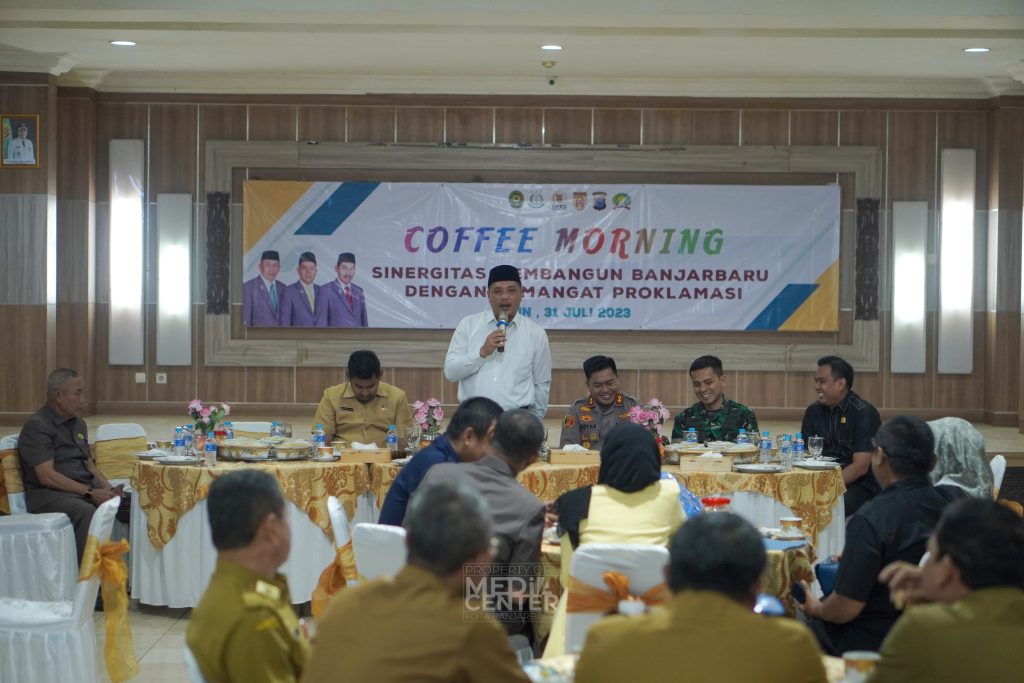 MEDIA CENTER BANJARBARU – “Coffee Morning Sinergitas Membangun Banjarbaru dengan Semangat Proklamasi” kumpulkan para pemimpin kota, termasuk Walikota Banjarbaru, Ketua DPRD kota Banjarbaru, Kapolres Banjarbaru, Dandim 1006 Banjar, seluruh kepala SKPD lingkup Pemerintah Kota Banjarbaru, serta Camat Lurah se-Kota Banjarbaru di Aula Linggangan kantor DPRD kota Banjarbaru pada Senin (31/07/23)