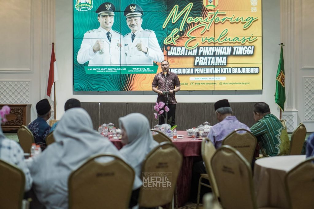 Dihadiri Wali Kota Banjarbaru H. M. Aditya Mufti Ariffin, dalam sambutannya ia menyampaikan monitoring dan evaluasi ini merupakan salah satu rangkaian besar dari reformasi birokrasi yang sedang berjalan pada pemerintahan Kota Banjarbaru saat ini.