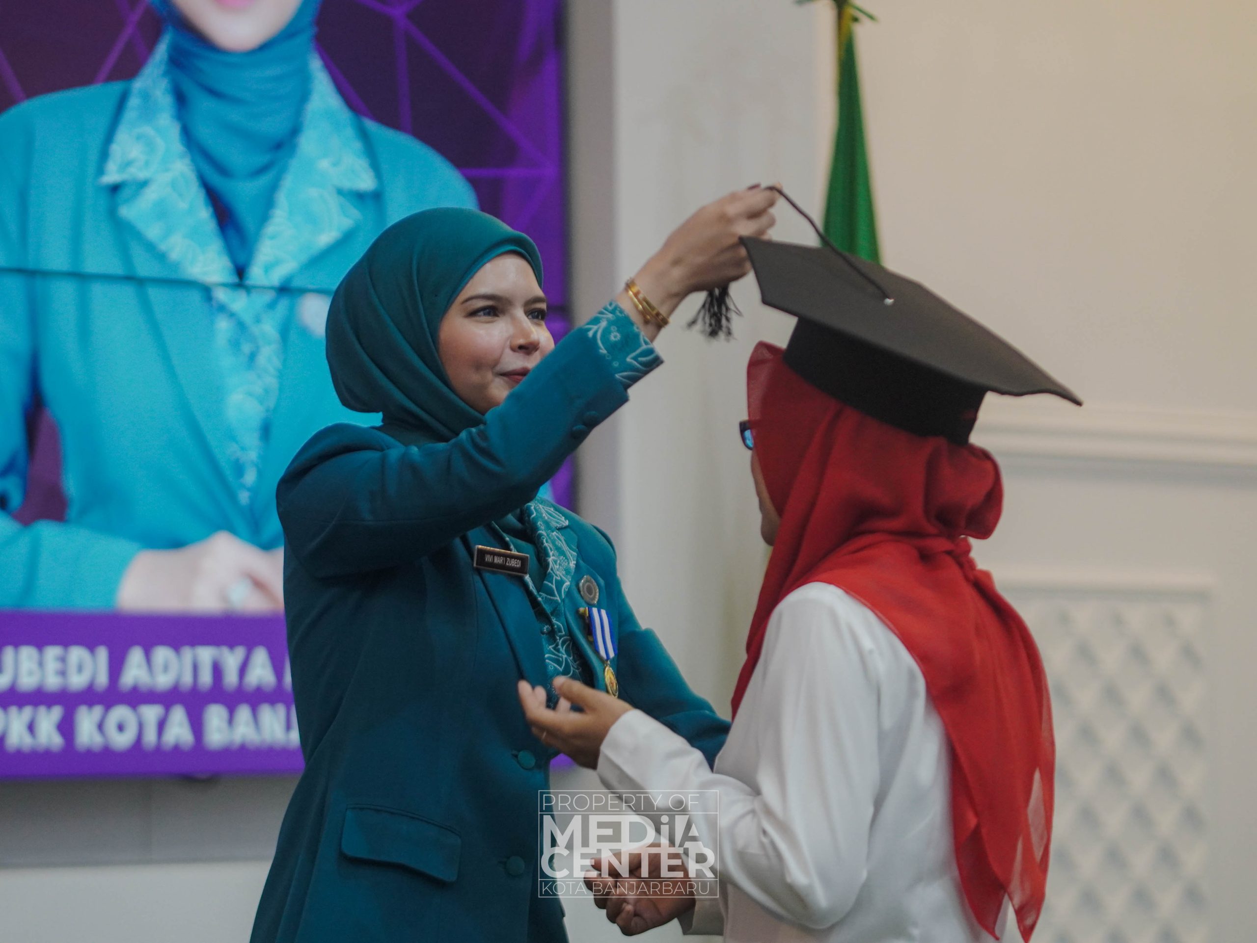MEDIA CENTER BANJARBARU – Sekolah gratis pemberdayaan perempuan ‘Hair Salon Business School’ yang telah dijalankan oleh Pemerintah Kota Banjarbaru telah selesai dilaksanakan. Hari ini seluruh peserta menjanlani wisuda kelulusan, yang di sematkan langsung oleh Ketua TP PKK Kota Banjarbaru serta Wali Kota Banjarbaru. Bertempat di Aula Gawi Sebarataan Pemko Banjarbaru, Rabu Siang. (23/08/2023)