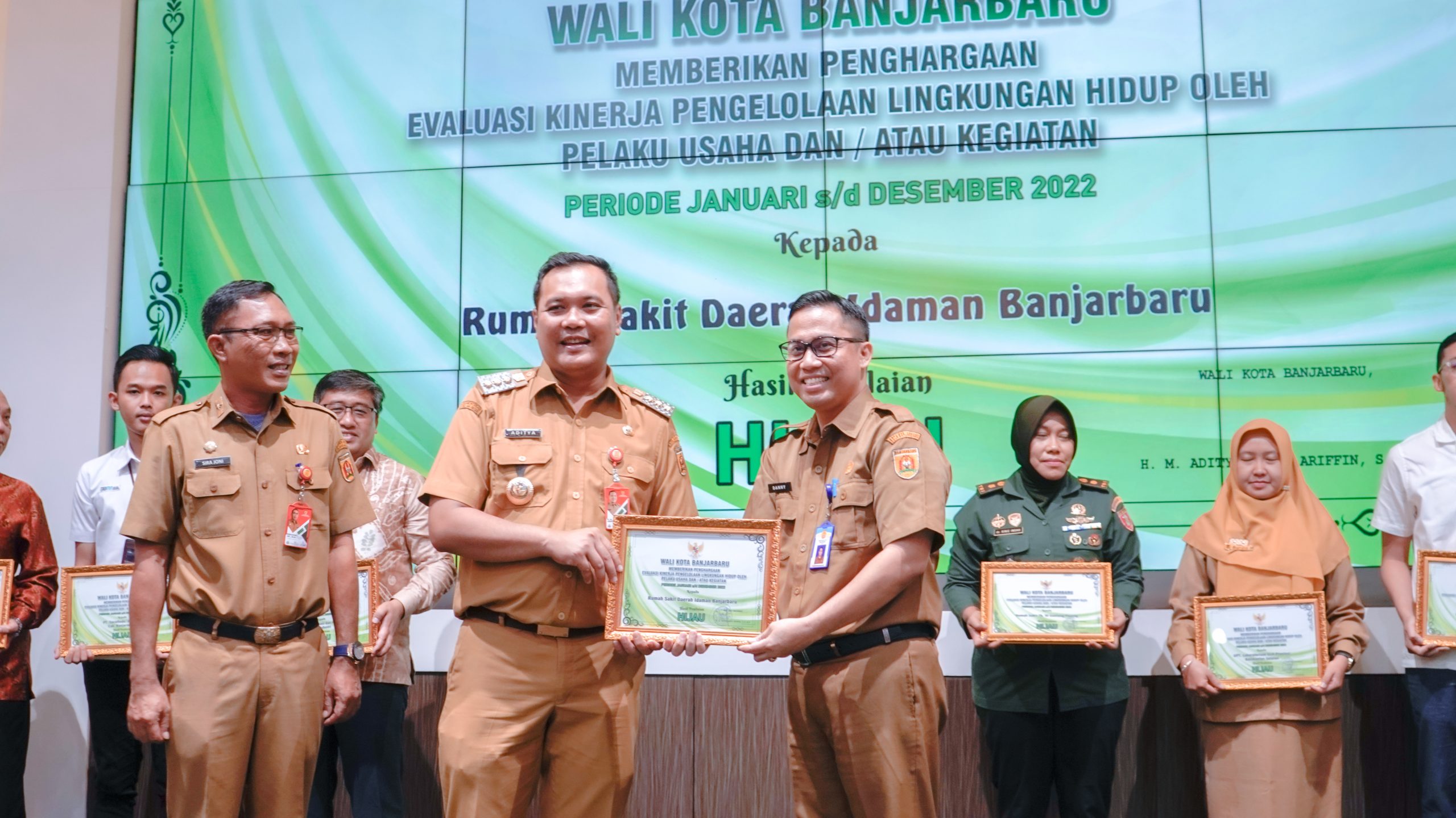 MEDIA CENTER KOTA BANJARBARU – Pelaku usaha dan kegiatan di Kota Banjarbaru Mendapatkan Penghargaan atas Evaluasi Kinerja Pengelolaan Lingkungan Hidup pada hari Senin(20/11/2023) di Aula Gawi Sabarataan Pemkot Banjarbaru.