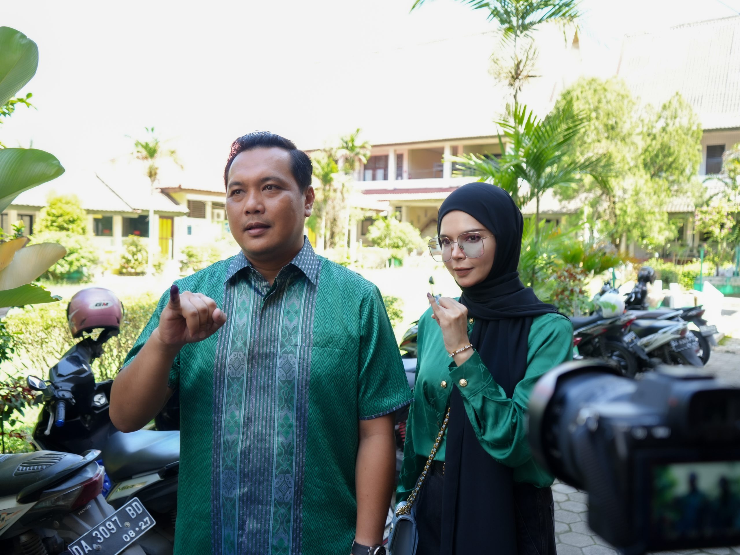 Wali Kota Banjarbaru H. M. Aditya Mufti Ariffin tiba di TPS 10 bersama sang istri Vivi Mar’I Zubedi pada pukul 10 pagi yang juga ditemani Ayahnda H. Rudi Ariffin.