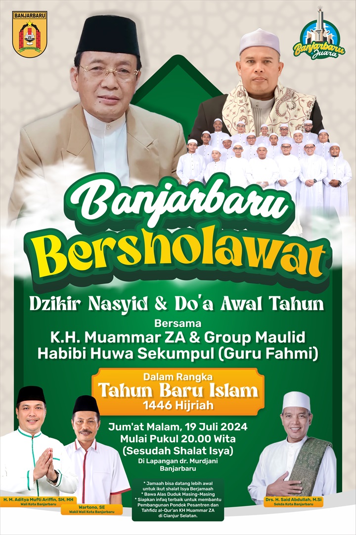 Mari Meriahkan “Banjarbaru Bersholawat” Dalam Rangka Syiar Agama dan Tahun Baru Islam 1446 Hijriah.