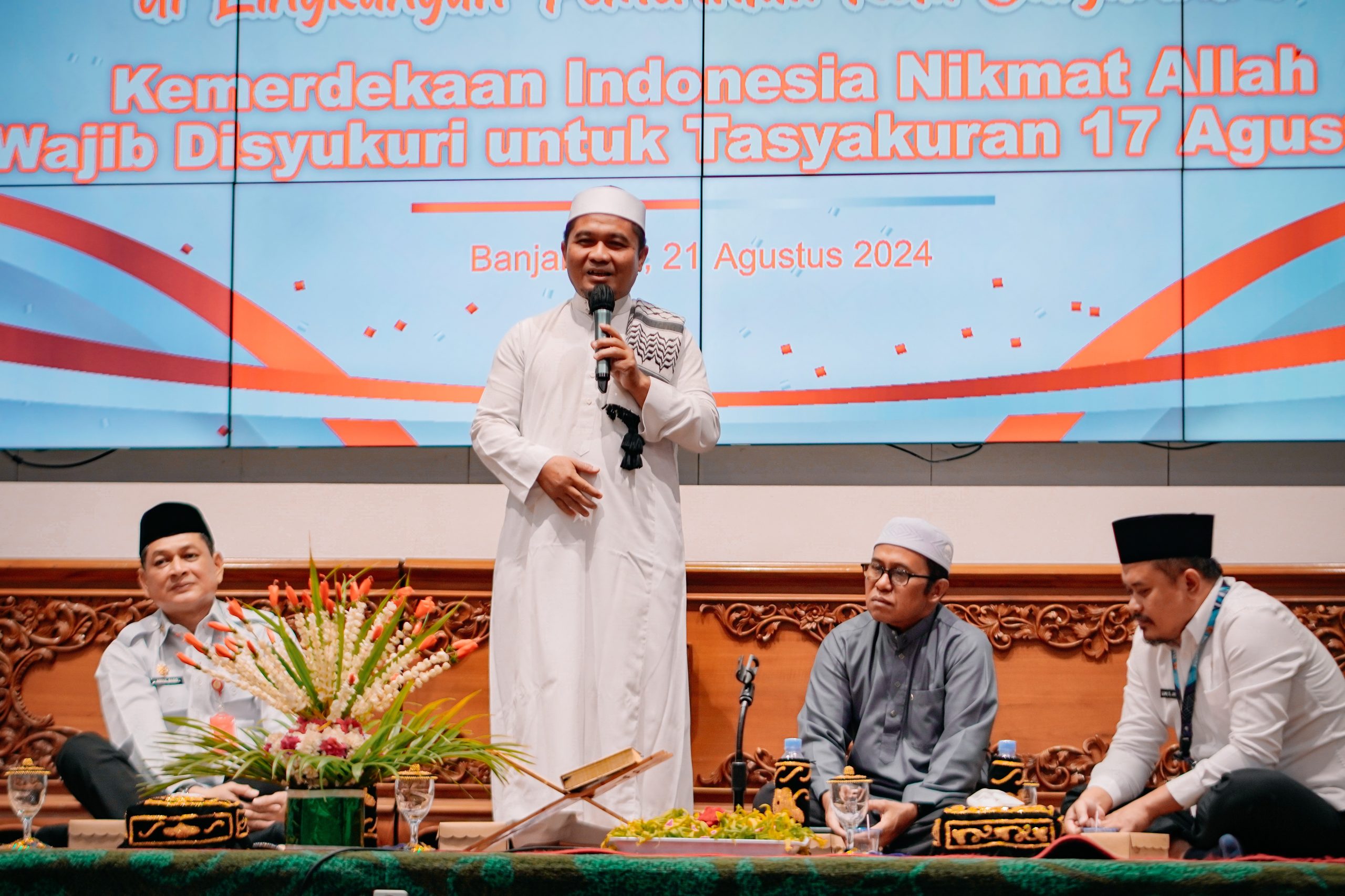 MEDIA CENTER BANJARBARU – Masih dalam rangka menyambut Hari Ulang Tahun Kemerdekaan Republik Indonesia yang ke-79, Pemerintah Kota Banjarbaru mengadakan ceramah agama rutin bertemakan “Kemerdekaan Indonesia Nikmat Allah Wajib Disyukuri”. Acara ini dilaksanakan di Aula Gawi Sabarataan Setdako Banjarbaru dan diikuti oleh pegawai pemerintah di lingkungan Pemerintah Kota Banjarbaru, pada Rabu. (21/08/2024)