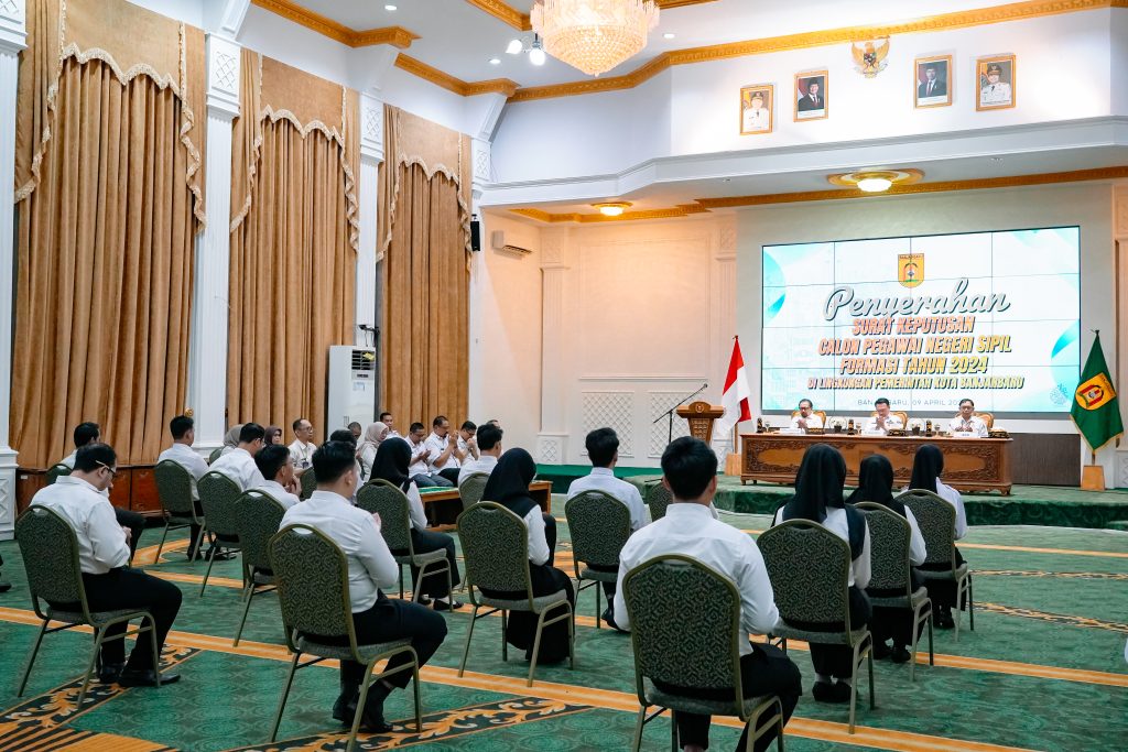 “Semoga dengan diserahkannya surat keputusan ini, akan menjadi motivasi dan penyemangat bagi saudara-saudara untuk memasuki dunia kerja yang baru yang menuntut profesionalitas dan tanggung jawab sebagai abdi negara dan abdi masyarakat,” ujarnya.