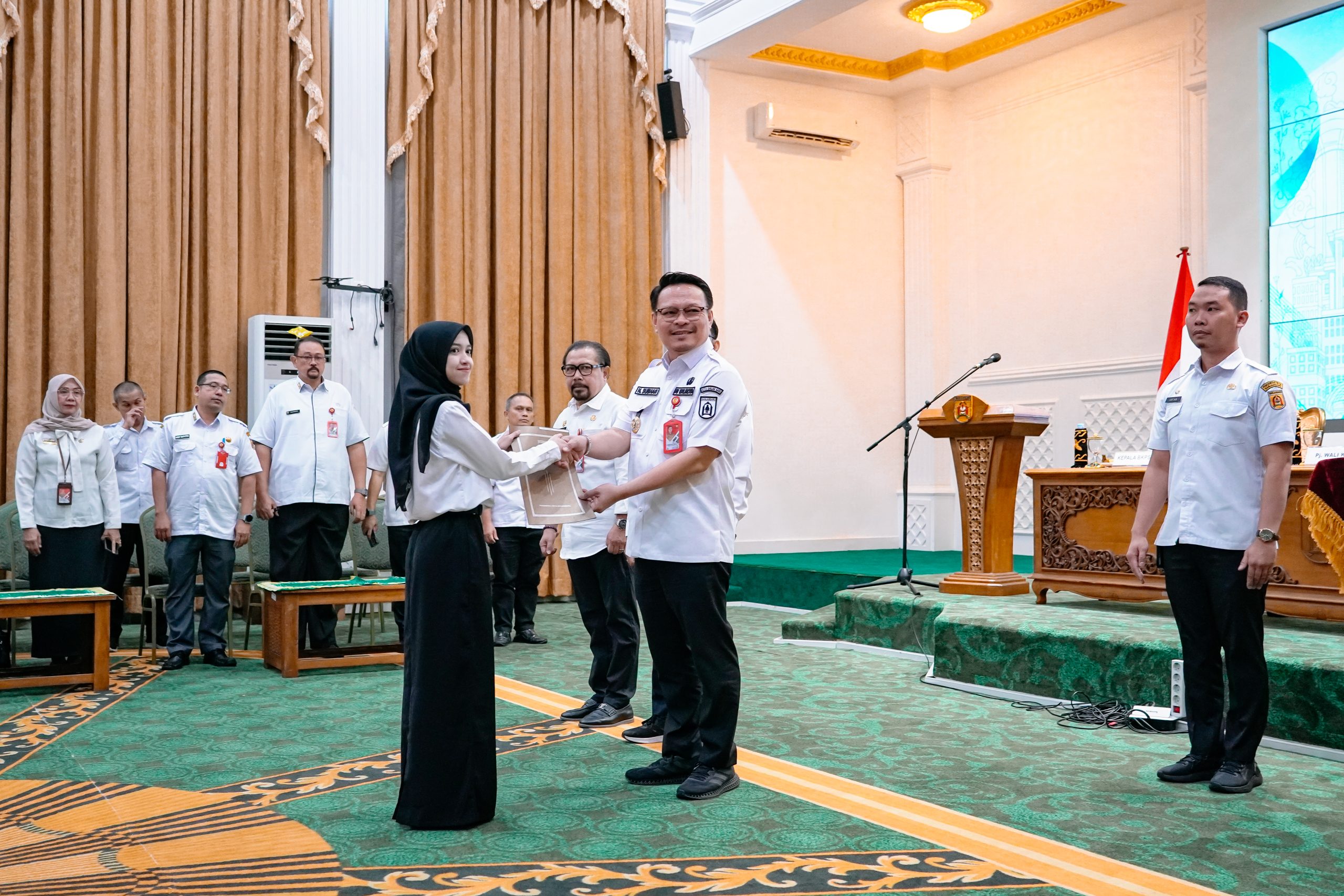 MEDIA CENTER BANJARBARU – Sebanyak 23 Calon Pegawai Negeri Sipil (CPNS) Formasi Tahun 2024 di lingkungan Pemerintah Kota Banjarbaru resmi menerima Surat Keputusan (SK) pengangkatan yang diserahkan langsung oleh Penjabat (Pj) Wali Kota Banjarbaru, Subhan Nor Yaumil, di Aula Gawi Sabarataan, Rabu (09/04/2025).