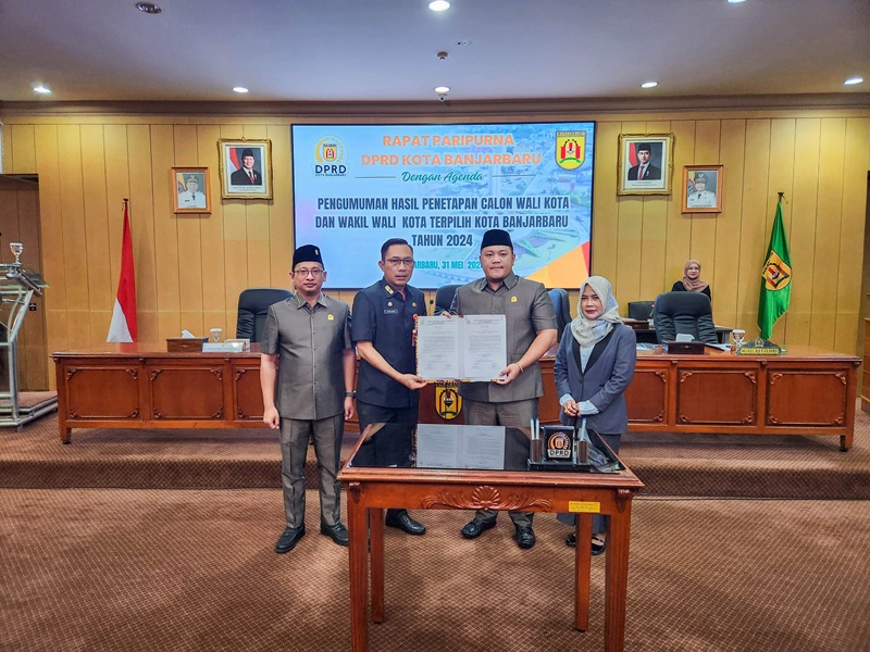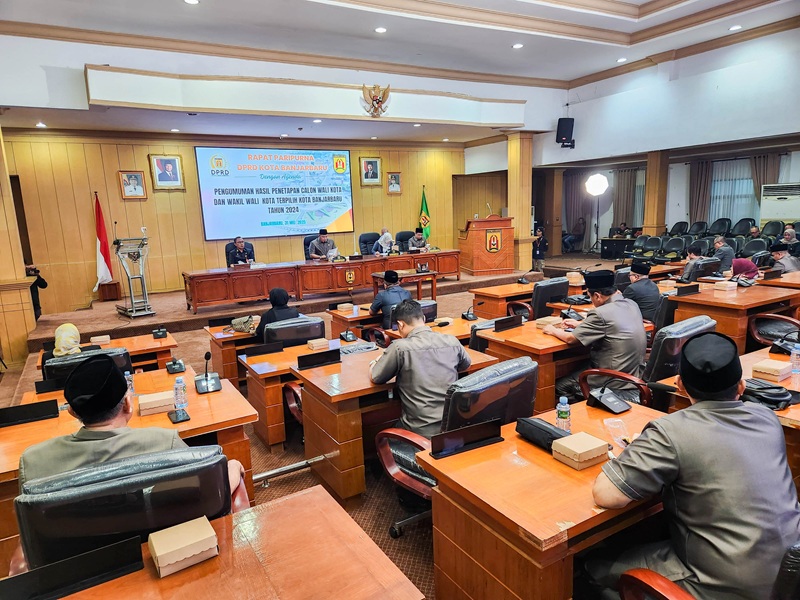 MEDIA CENTER BANJARBARU – Bertempat di Graha Paripurna Dewan Perwakilan Rakyat Daerah (DPRD) Kota Banjarbaru dilaksanakan Rapat Paripurna DPRD Kota Banjarbaru dengan agenda Pengumuman Hasil Penetapan Calon Wali Kota dan Wakil Wali Kota Terpilih Kota Banjarbaru Tahun 2024 pada Sabtu (31/05/2025) malam.