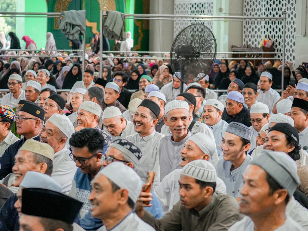 “Mari kita jaga persatuan kota kita ini. Bersatu dalam kebaikan, bersatu dalam ketaatan, dan bersatu dalam menjalankan nilai-nilai Islam,” serunya yang disambut gemuruh “Aamiin” oleh para jamaah.