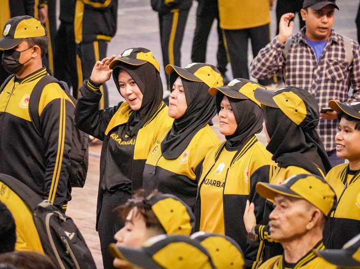 MEDIA CENTER BANJARBARU – Wali Kota Banjarbaru, Hj. Erna Lisa Halaby secara resmi melepas keberangkatan 55 Kontigen Pekan Olahraga Provinsi (PORPROV) XII Kalimantan Selatan Tahun 2025 yang akan berlaga di kabupaten Tanah laut, bertempat di GOR Rudy Resnawan Kota Banjarbaru, Rabu (29/10/2025).