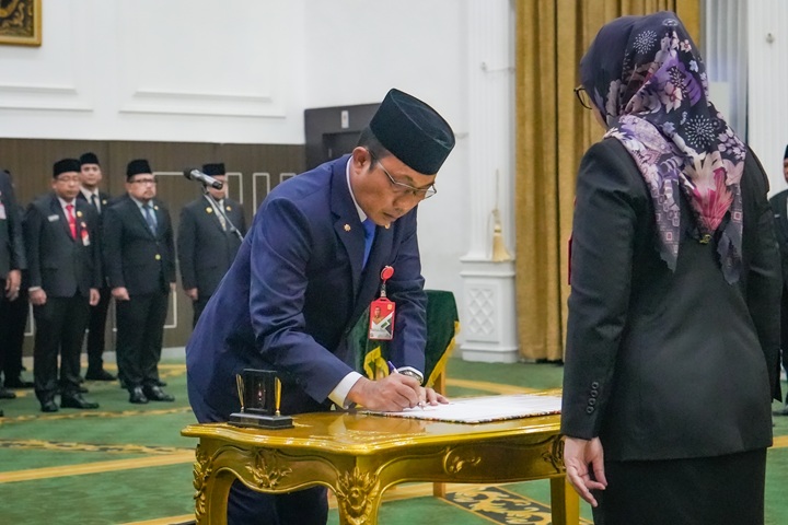 MEDIA CENTER BANJARBARU – Wali Kota Banjarbaru, Hj. Erna Lisa Halaby secara resmi telah melantik dan mengambil sumpah/janji Jabatan Pimpinan Pratama serta Sekretaris Daerah Kota Banjarbaru dalam upacara pelantikan yang digelar, Aula Gawi Sabarataan, Senin (03/11/2025).
