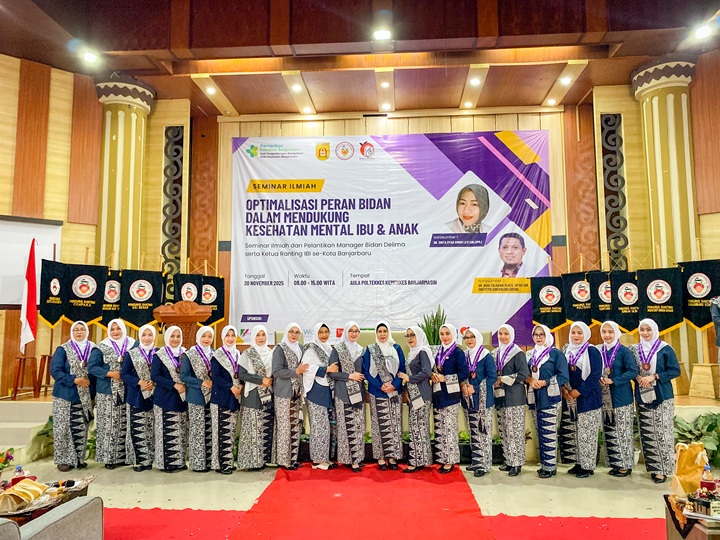 MEDIA CENTER BANJARBARU – Ikatan Bidan Indonesia (IBI) Cabang Kota Banjarbaru resmi menggelar Pelantikan Manager Bidan Delima dan Ketua Ranting IBI se-Kota Banjarbaru periode 2023-2028, yang berlangsung dengan khidmat dan penuh antusias bertempat di Aula Poltekkes Kemenkes Banjarmasin di Banjarbaru, Minggu (30/11/2025).