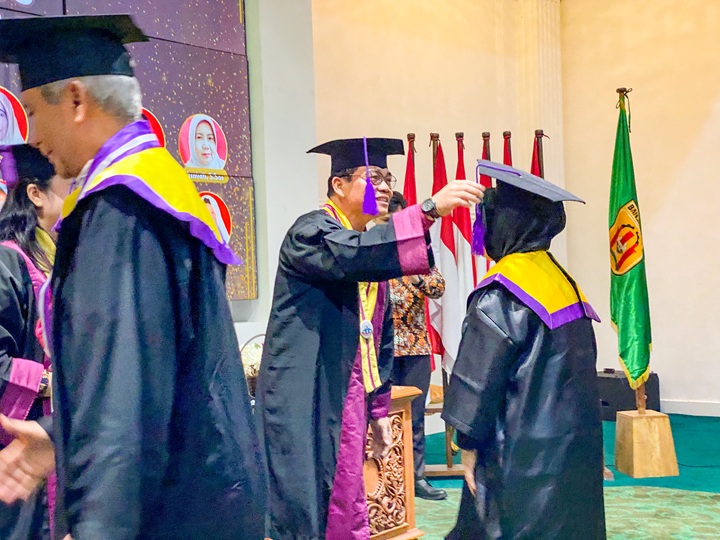 Prosesi wisuda secara resmi dikukuhkan oleh Wali Kota Banjarbaru, Hj. Erna Lisa Halaby yang pada kesempatan ini diwakili oleh Asisten III Bidang Administrasi Umum Sekretaris Daerah Kota Banjarbaru, Kanafi.
