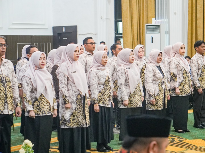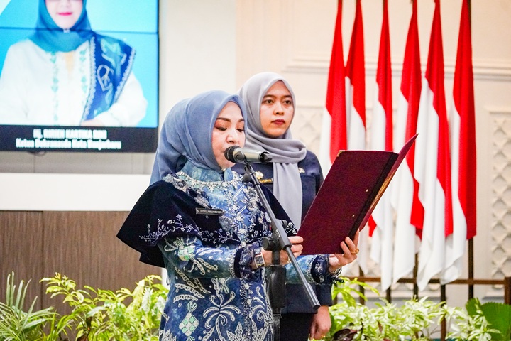 Setelah pengukuhan, Ketua Dekranasda Kota Banjarbaru Hj. Ir. Ririen Kartika Rini mempimpin langsung pelantikan Pengurus Dekranasda Kota Banjarbaru masa bakti 2025-2030.
