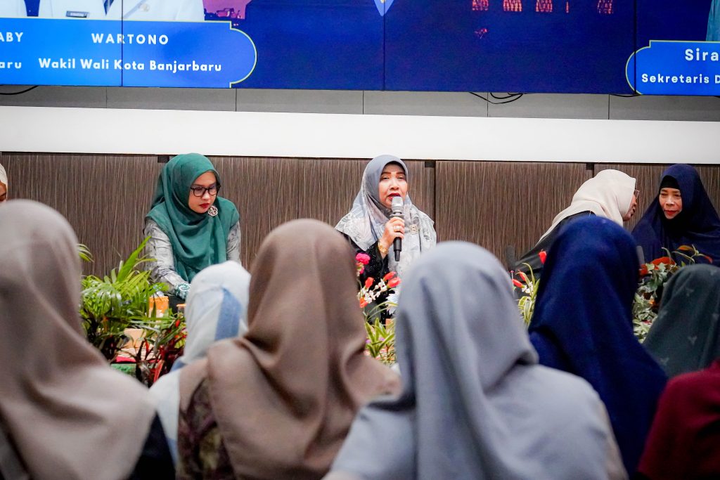 Kepala DP3APMP2KB Kota Banjarbaru, Hj. Erma Epiyana Hartati, S.Sos., M.M., dalam sambutannya mengajak para perempuan yang tergabung dalam berbagai organisasi wanita untuk memaknai peringatan Isra Mi’raj sebagai penguatan peran dalam keluarga.